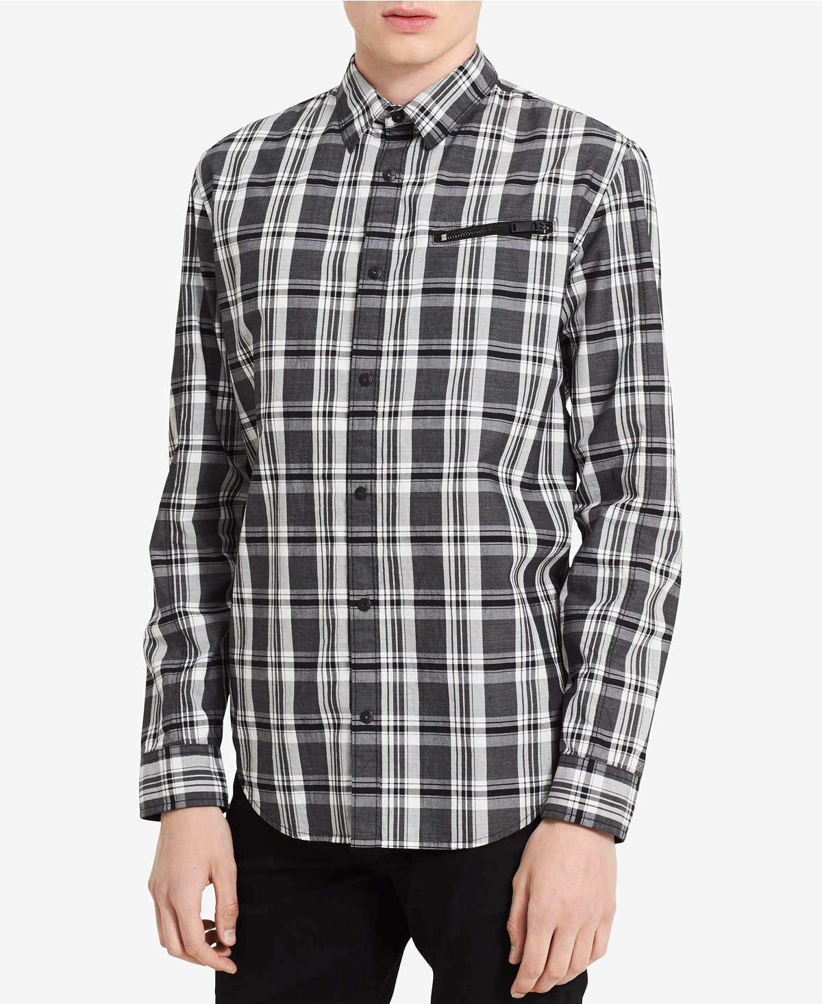 Áo sơ mi nam dài tay - Calvin Klien Jeans caro đen túi dây kéo