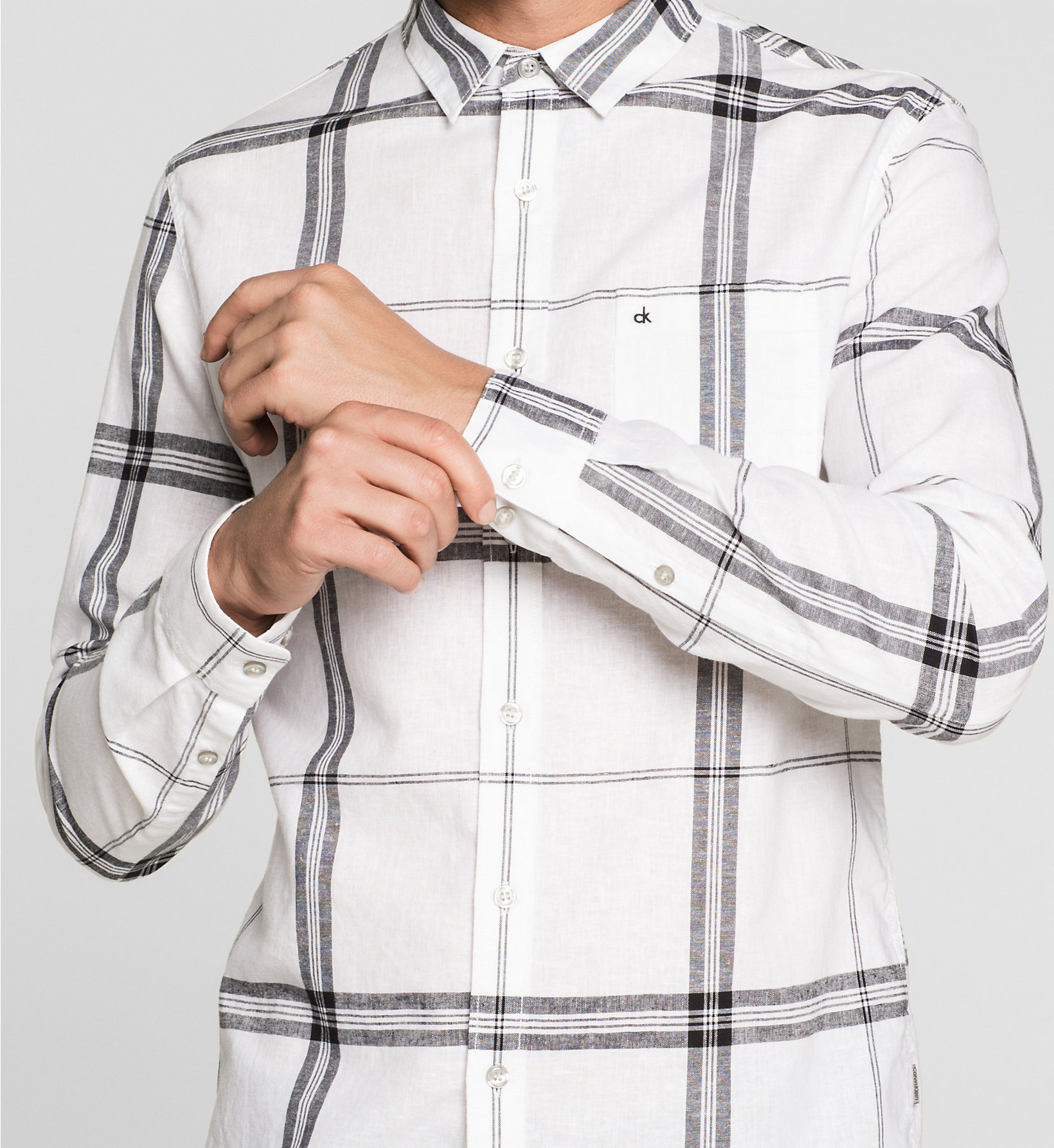 Áo sơ mi Nam dài tay Calvin Klein Jeans - Caro đen lớn Hàng xách tay USA - 53% linen 47% cotton Xuất xứ : China